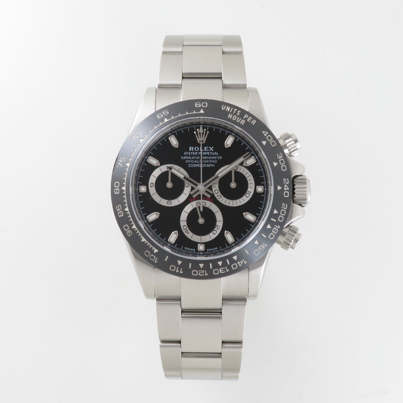 ロレックス デイトナ(コスモグラフ デイトナ)は、1963年に誕生したクロノグラフ機能を備えたスポーツウォッチです。モータースポーツを意識したデザインと高精度な動きが特徴で、特にセラクロムベゼル搭載の新型モデルやヴィンテージモデルは高い人気を誇ります。希少性の高さから中古市場でも高額で取引され、資産価値が上昇しやすいモデルとしても注目されています。