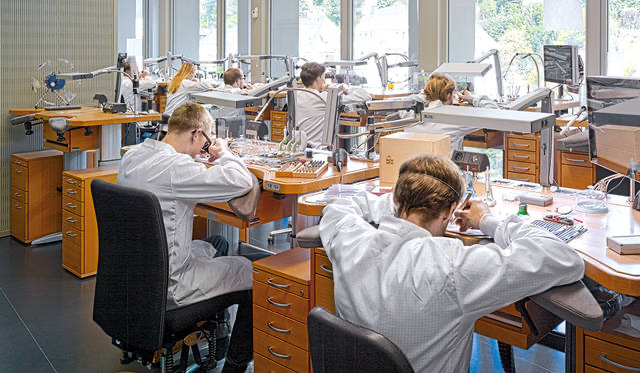 - 高精度な時計の組み立て作業を間近で見学可能。