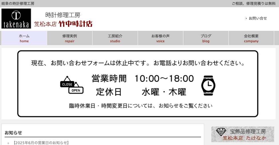 竹中時計店 – 昭和初期創業、三代続く確かな技術