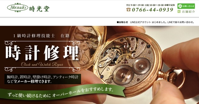 時光堂は富山県高岡市伏木古府に所在し、創業は昭和20年という歴史ある宝飾・時計・メガネ店です。代表者 岩坂聡介氏による店舗運営のもと、一級時計修理技能士が在籍し、古いアンティークから現行モデルまで幅広く対応しています。最寄りはJR伏木駅から徒歩圏内。職人が部品を自作して対応するケースもあり、技術力の高さが特徴です。公式サイトや修理実績ページでは、オメガの手巻き式や自動巻式、クォーツ式において分解掃除(オーバーホール)や竜頭交換、パッキン交換などの対応事例が多数公開されています。公式FAQや事例ページでは、オメガ修理対応を明記しており、郵送・持ち込みともに相談可能としております。
