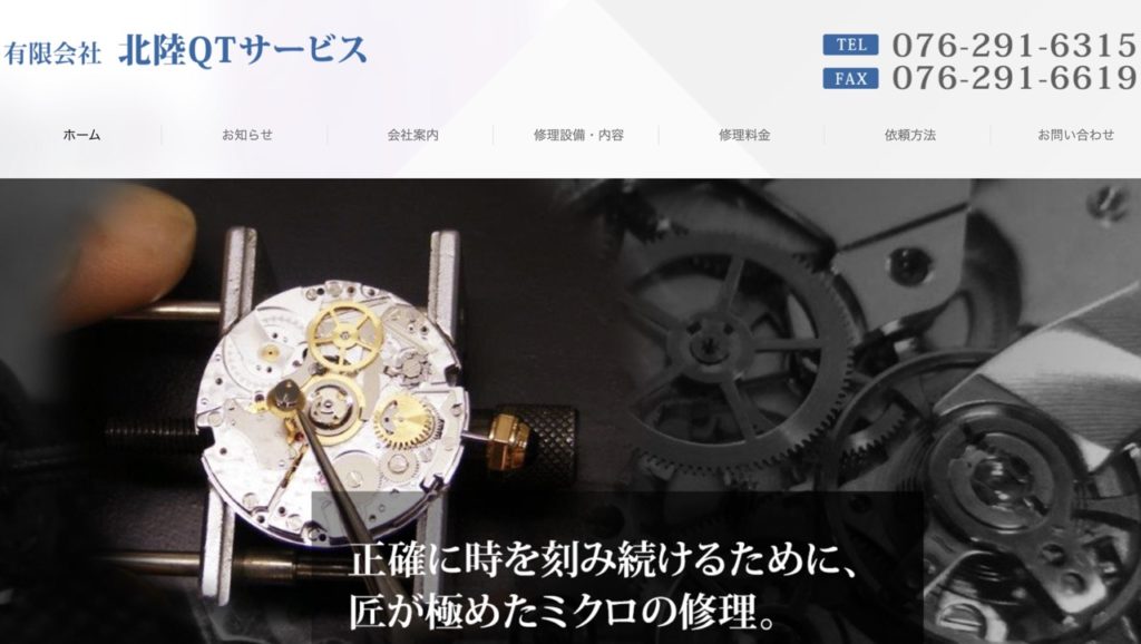 北陸QTサービスは、金沢市新神田に本社を置き、修理から研磨までを手がける時計修理専門工房です。創業は2005年4月、設立は同社名義である有限会社北陸QTサービスとしてです。JR金沢駅近くの新神田バス停からすぐの立地で、駐車場も完備しているため車でもアクセスしやすい店舗です。社内には国家資格「時計修理技能士」を持つ技術者が複数在籍し、メーカーでも対応が難しい壊れた部品の自作修理まで行える点でも評価されています。また簡易クリーンルームやエアーシャワーが整えられた修理設備と研磨専任スタッフにより、外装の磨き上げも本格的に対応しており、購入当初のような輝きを取り戻せると好評です。