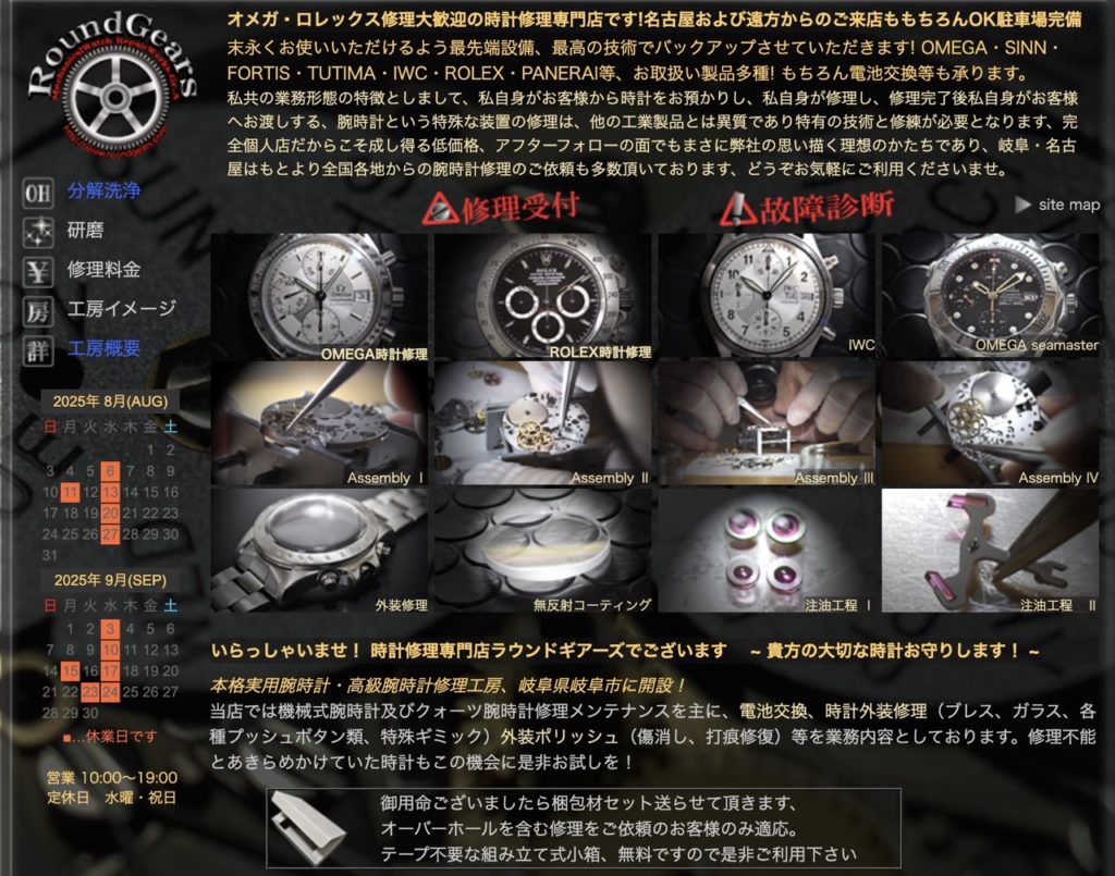 東京・横浜・名古屋・大阪に店舗を展開し、持ち込みによる修理受付も可能。もちろん全国からの郵送修理にも対応しています。経験豊富な技術者による体制と、安定した処理能力で、幅広いブランドのオーバーホールにも安心して依頼できる修理店です。