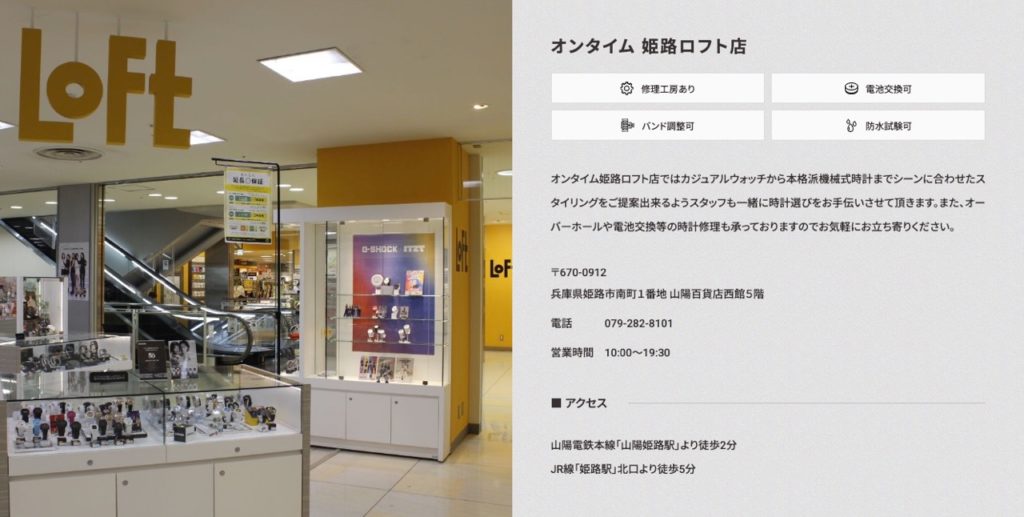 ホームページhttps://www.ontime-move.watch/stores/ontime-himeji-loft/