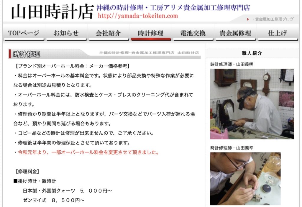 | ホームページ | https://yamada-tokeiten.com/tokei.html |